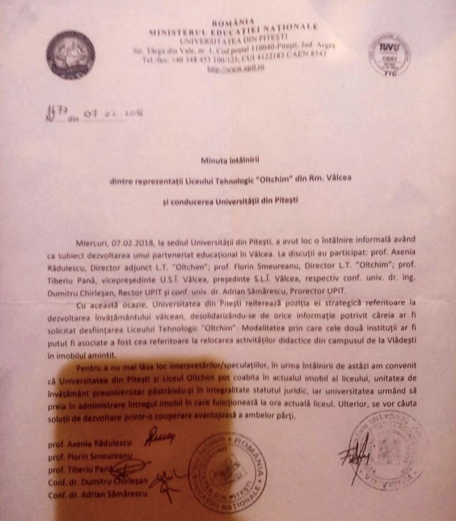 Decizia arbitrara, lipsita de transparenata si dictatoriala de desfintare a doua institutii de invatamant din Ramnicu Valcea ( simultan) nu trebuie sa ramana fara urmari pentru politicienii cu interese ascunse ai zilei.