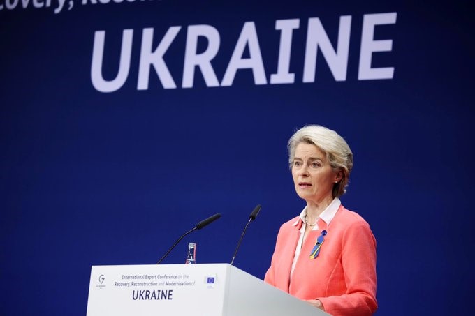 Ursula von der Leyen: Nu putem să egalăm niciodată sacrificiile pe care le fac ucrainenii în fiecare zi. Dar le putem sprijini și le oferim ceea ce au nevoie – pentru ajutor, reabilitare rapidă și reconstrucție.