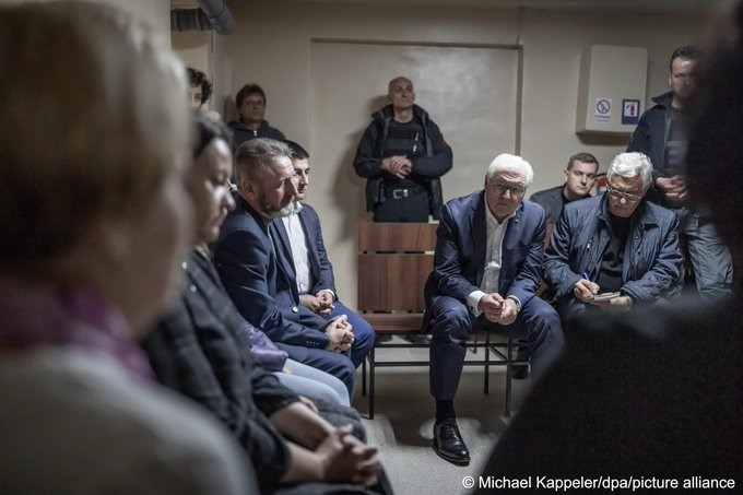 Președintele german Frank-Walter Steinmeier, aflat în vizită în Ucraina, a spus: „Mesajul meu către poporul Ucrainei este: vă puteți baza pe Germania! Vom continua să sprijinim Ucraina: militar, politic, financiar și umanitar.” Președintele Germaniei a petrecut o oră și jumătate într-un adăpost anti-bombe în timpul vizitei sale în Ucraina. Alerta de raid aerian a fost anunțată când Frank-Walter Steinmeier a vorbit cu localnicii din orașul Koryukivka, regiunea Cernihiv.