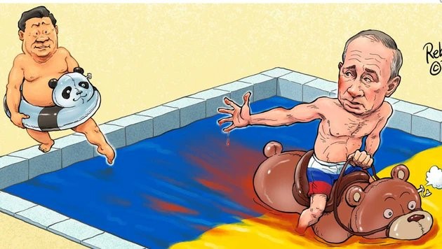 Aceasta vă spune totul despre șarada propagandistică a vizitei lui Xi Jinping în Rusia lui Putin. Atât Xi, cât și Putin au cerut încetarea acțiunilor care „cresc tensiunile” și prelungesc războiul din Ucraina. Așa că China condamnă sprijinul pentru Ucraina, dar nu și invazia genocidă a Rusiei.