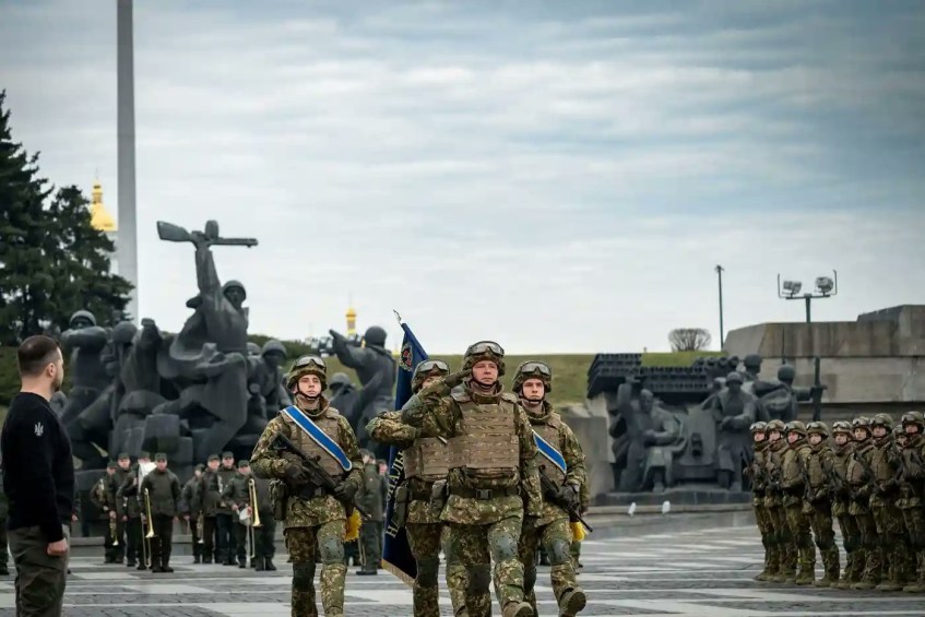 Președintele Zelenski făcând ceva ce Putin nu ar îndrăzni niciodată să facă – să se apropie de soldați cu arme. El a participat la evenimentul de marcare a celei de-a 9-a aniversări a Gărzii Naționale a Ucrainei și de absolvire a ofițerilor.