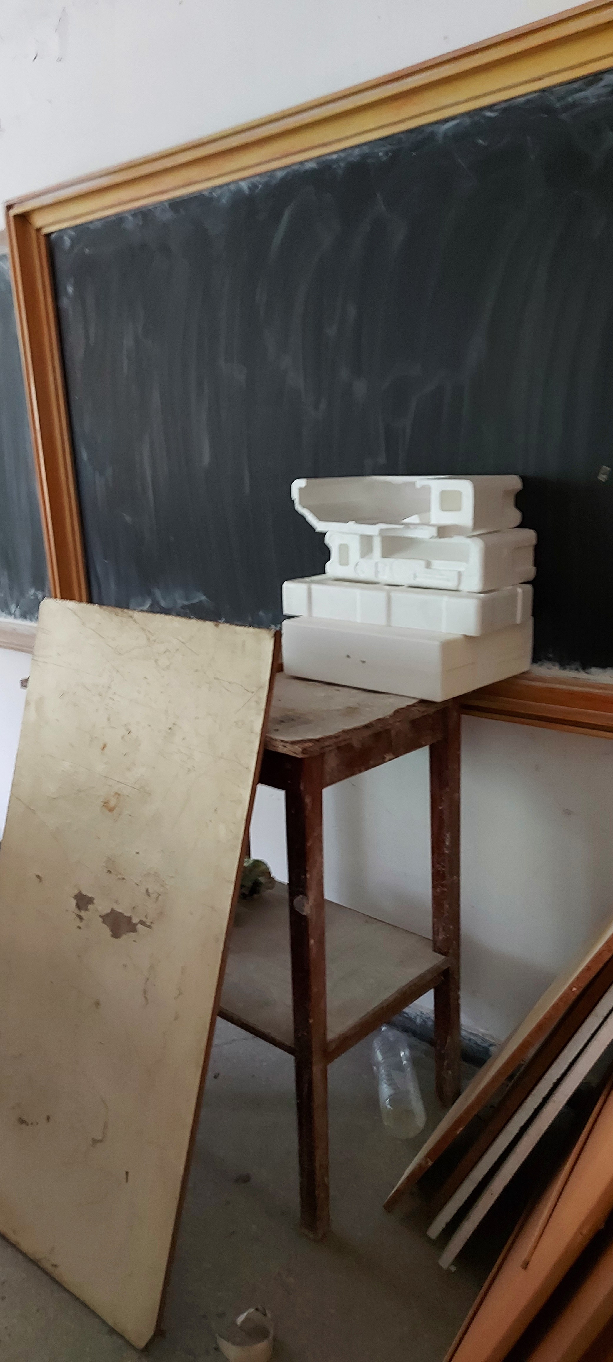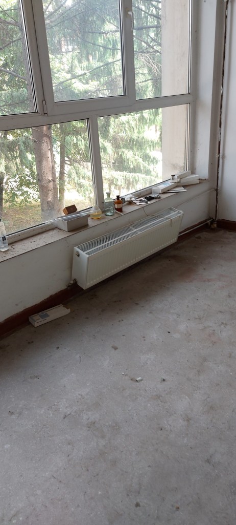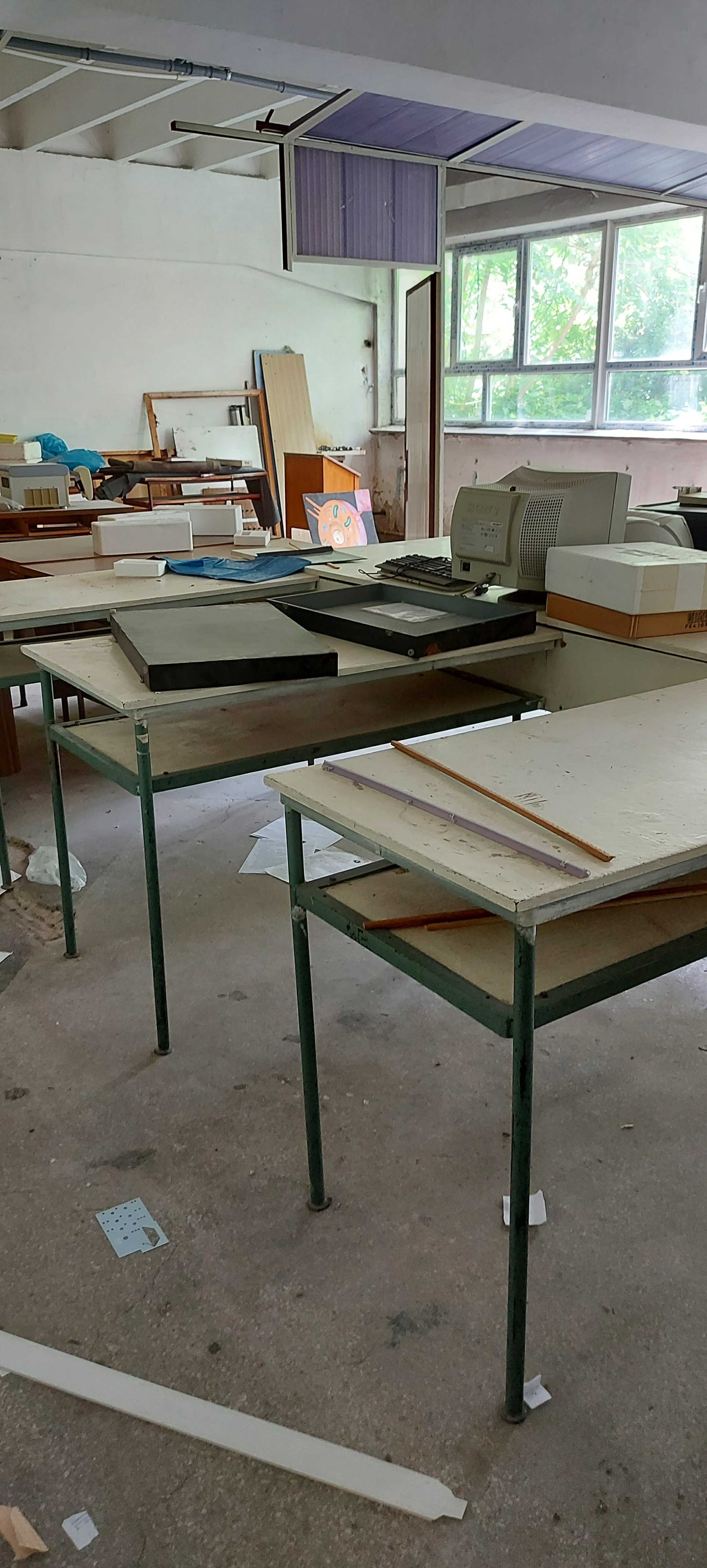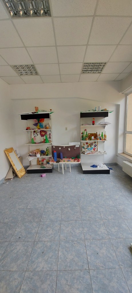 Alte spații școlare de la parterul clădirii (cu acces de pe scara a doua, la stânga din holul Bibliotecii) Și aici au fost „împrumutate” caloriferele, fiind duse spre zări mai… productive! În rest, au fost depozitate diferite materiale, care nu prezentau interes pentru… prădători. În ultima dintre fotografii – rezemate de un perete – sunt câteva din hărțile evacuate din Cabinetul de istorie!